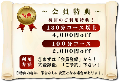 キャンペーン・会員割引・特典「アロマメソッド」!|東京都全域対応中|港区・目黒区・世田谷区・新宿区・渋谷区・品川区・大田区